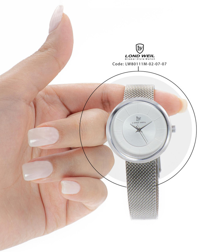• "Londweil" یک قاب نقرهای و بندی استیل برای تماشای دستان شما؛ ساعت لوندویل را به یادگار هدیه بگیریم • Let's get a silver frame and a steel band to showcase your hands; and let's buy a Londweil watch as a souvenir gift. • Code: 2006620001 • [information] Stainless Steel Silver Dial Milanese Strap women's watch • [استیل صفحه سیلور] [بند حصیری زنانه] • •