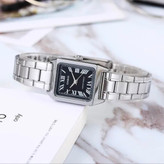 صفحه ساعت به رنگ مشکی است و تضاد جذابی با بدنه نقرهای ایجاد میکند. عقربهها و نشانگرها نیز به رنگ نقرهای روشن طراحی شدهاند تا خوانایی زمان در هر شرایط نوری بالا باشد و در عین حال ظاهر کلی ساعت کلاسیک و شکیل باقی بماند.