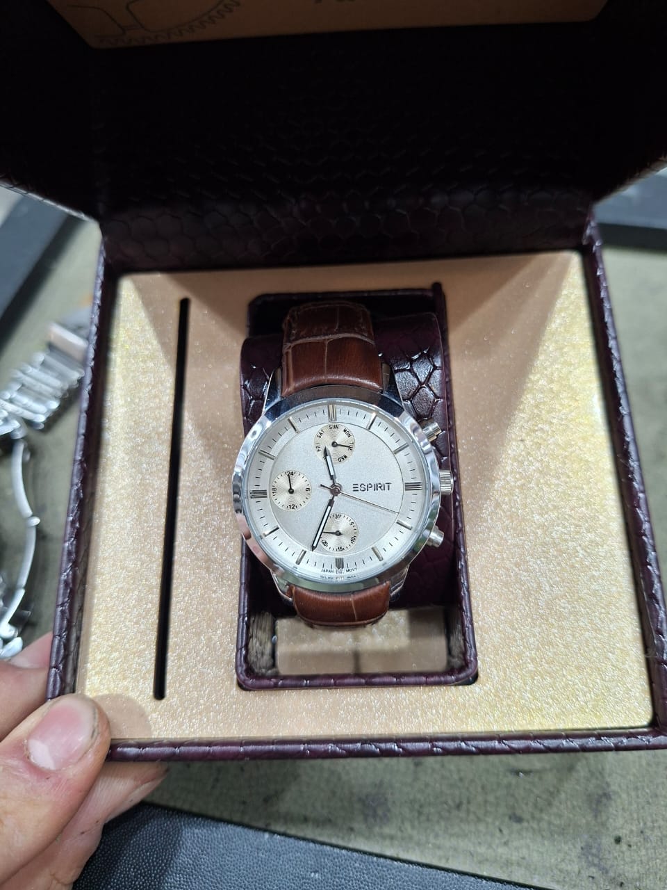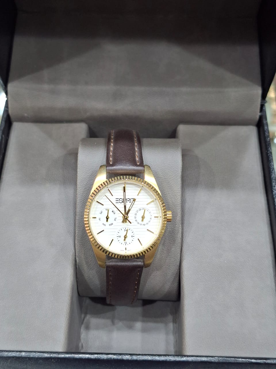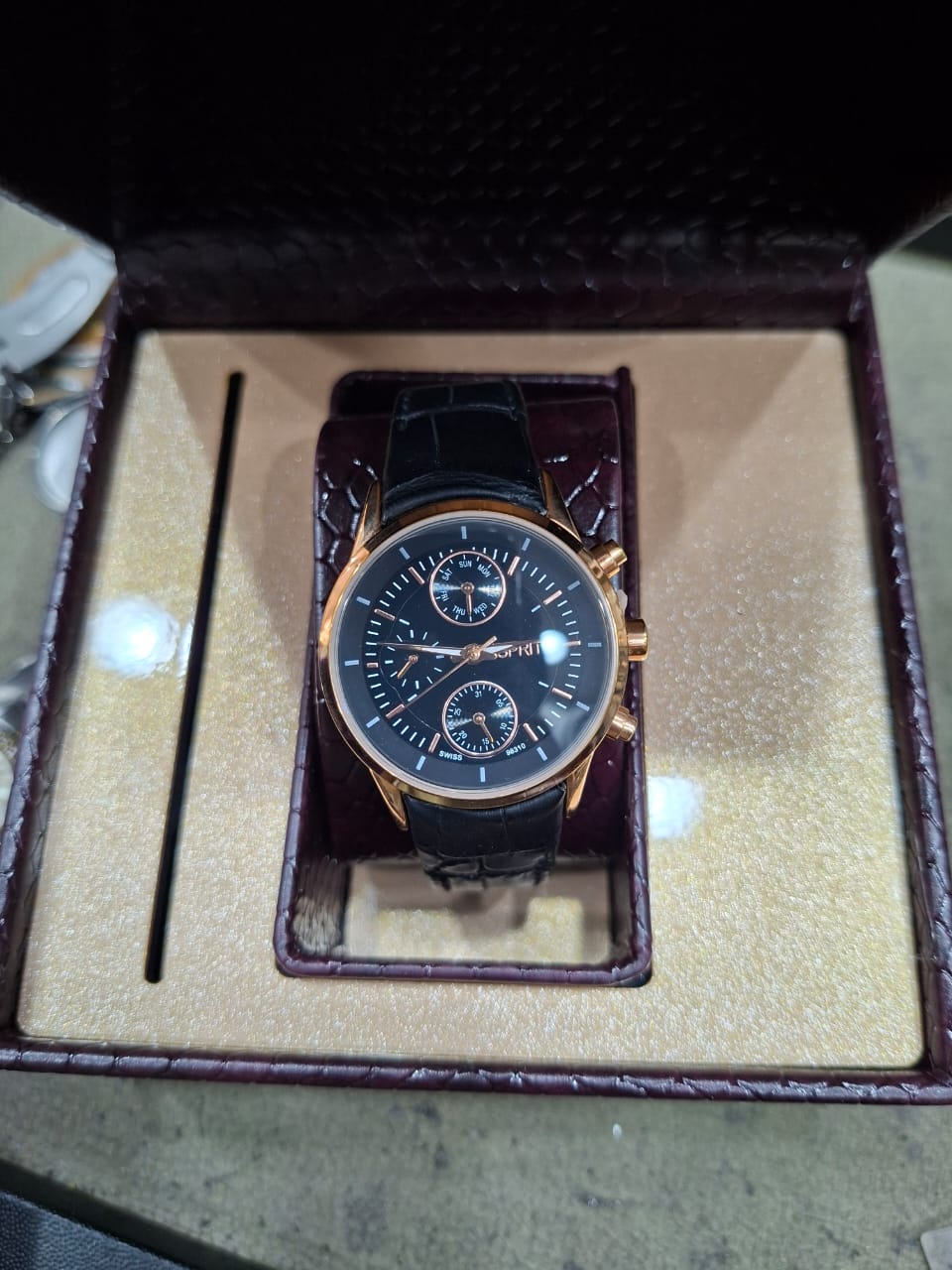 ساعت بند چرمی سه موتوره فعال دارای تقویم روز وایام هفته دارای عقربه 24 ساعته موتور ژاپن با گارانتی یکساله رنگ وموتور دارای قفل پروانهای با کیفیت ضداب درحد دست شستن بند چرم با کیفیت تنوع رنگ بند وقاب