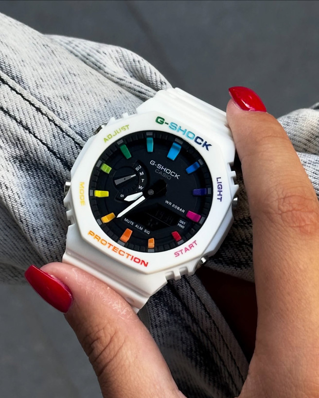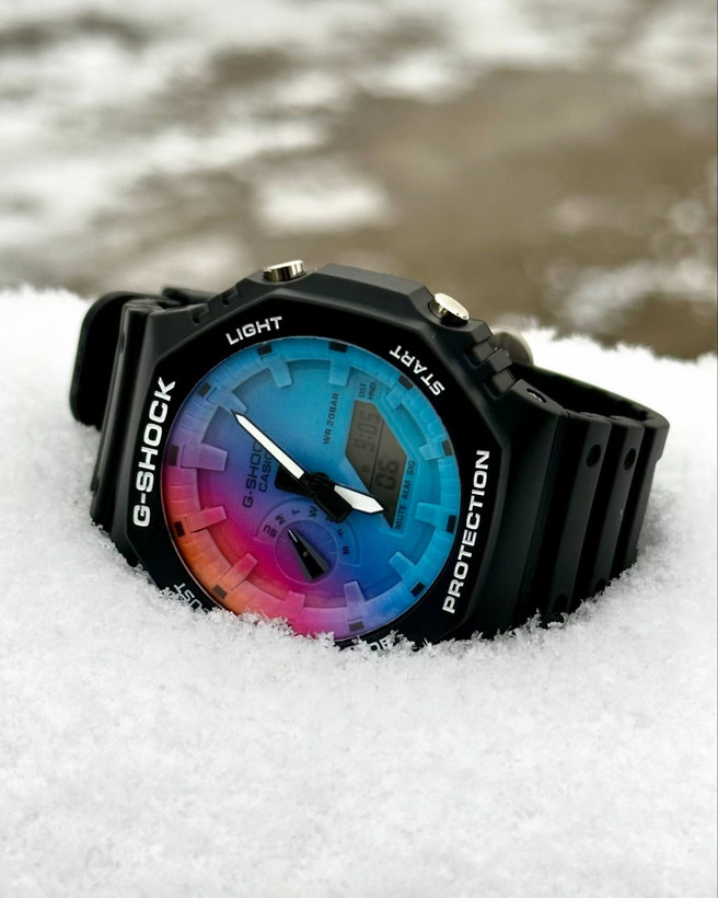 کارای جذاب GA2100 پر طرفدار شارژ شد کرنوگراف کوآرتز اتولايت كرنوكمتر شیشه معدنی ضد آب ضد ضربه مقاوم در برابر حرارت وزن ۱۱۰ گرم نمايشگر ساعت آنالوگ و ديجيتال نور پس زمينه عقربه شبرنگ مقاوم در برابر مغناطيس شیشه ضد خش ضد آب ،ضد ضربه و کلی امکانات دیگر همراه #دختر#جدید#پسر