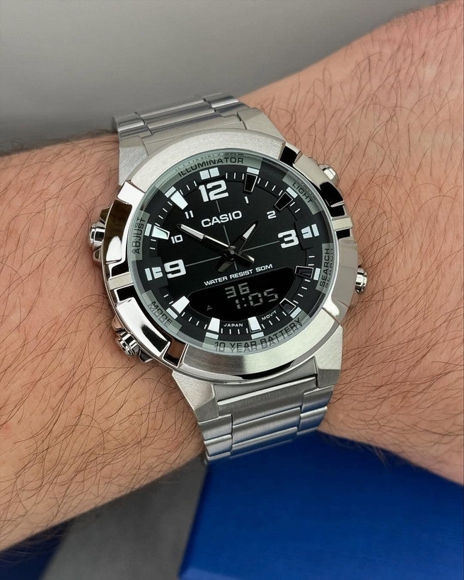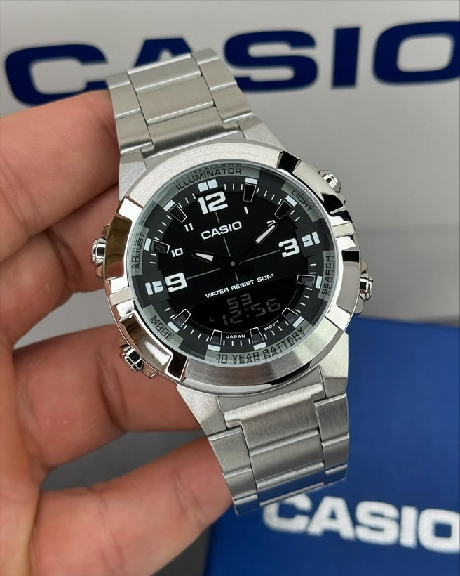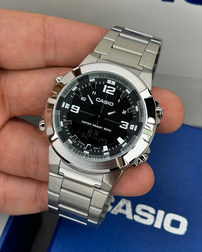 کاسیو اصل آدم لذت میبره کیفیت این ساعت رو لمس میکنه هرکسی از نزدیک کیفیت این ساعت رو ببینه باورش نمیشه که همچین ساعت باکیفیت و جذابی این قی باشه همه نظره عالیه این مدل مقایسه کیفیت این ساعت با مدلها هم خودش از برندهای دیگ مثله یه شوخیه .با ضمانت نامه یکساله . تضمین اصالت کالا موتورژاپن رنگ صفحه مشکی عمر باتری ۱۰ ساله بند استیل ۳۱۶ ضدزنگ کرنومتر و ساعت جهانی سایز قاب ۴۷/۵ میل رنگ۱۰۰% ثابت مقاوم در برابر آب داراي يكسال ضمانت موتور و كارت گارانتي ———————————————— —————————— —————————