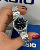 کاسیو زنانه اصل از اون ساعتای خوش و کاربردیه کاسیو که تو کلکسیون هر خانمی باید یدونه از باشه بخاطره طراحی و ترکیب رنگش برای تمامی استایلا و هر سن و سالی مناسبه .با ضمانت نامه یکساله . تضمین اصالت کالا موتورژاپن رنگ صفحه مشکی قاب دور : سیلور قطر صفحه کوارتز مقاوم در برابر آب داراي يكسال ضمانت موتور و كارت گارانتي ———————————————— —————————— ———————————————