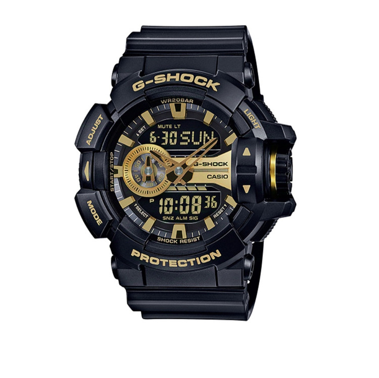از سری ساعتهای مچی بسیار بادوام G-SHOCK مجموعهای جدید از GA-400 عرضه شده که برای آسان نمودن عملیات از کلید چرخان بزرگی برخوردار است. رنگ مشکی پایه G-SHOCK با ریزهکاری طلایی رنگ برجسته شده تا طرحی شبیه به طرحی شبیه به طرحهای اقلام مد HIP-HOP یا B-BOY خلق کند. رنگ مشکی با رنگ طلایی، که در بسیاری از زیورآلات مورد استفاده قرار میگیرد در طراحی بدنه، بند و صفحه به کار رفته تا ظاهر این ساعت مچی را جذاب و برجسته کند. مقاومت در برابر میدان مغناطیسی با رده ISO764 کلید چرخان
