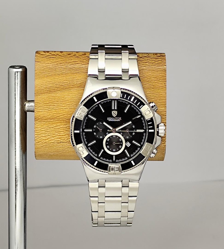 ساعت مردانه سناتور سه موتوره کرنوگراف فول استیل دور قاب خلبانی