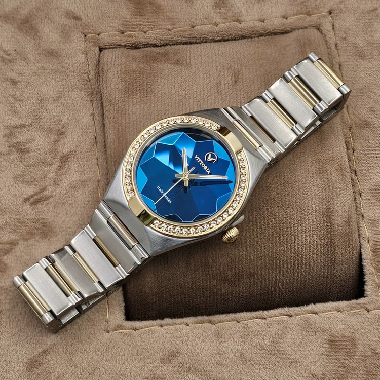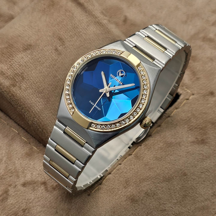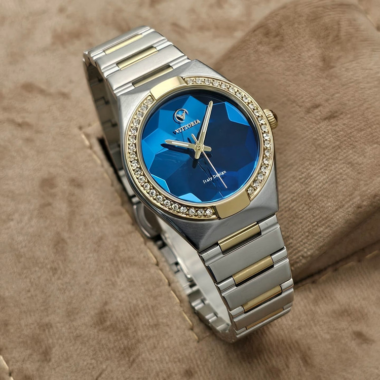 ساعت زنانه ویتوریا مدل محبوب از ویتوریا با دیزاینی معروف ولی با صفحه منشوری و رنگ صفحه آبی رو براتون موجود کردیم ساعت زنانه ویتوریا VITTORIA کد رفرانس VT3430 اورجینال موومنت ژاپنی قاب و بند استیل ضد حساسیت قفل پروانه ای صفحه منشوری فیروزه ای دارای پک اورجینال + شناسنامه و جعبه شیک ضمانت معتبر شرکتی هه