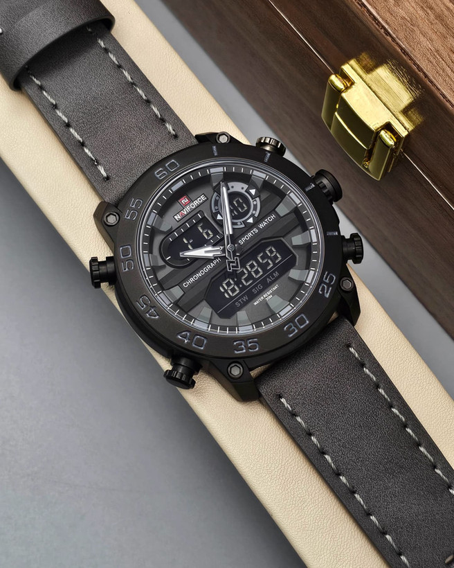 ساعت مردانه ناویفورس مدل دو زمانه (دیجیتالی و آنالوگی ) از برند ناویفورس با کلی امکانات و ویژگی های کاربردی ساعت ناویفورس NAVIFORCE کد رفرانس NF9235 اورجینال موومنت ژاپنی آنالوگ و دیجیتال ساعت دیجیتالی و آنالوگی فول تقویم کرنومتر آلارم نور پس زمینه ساعت معکوس قفل کمربندی پک اورجینال با جعبه و شناسنامه ضمانت رسمی و معتبر ثبت