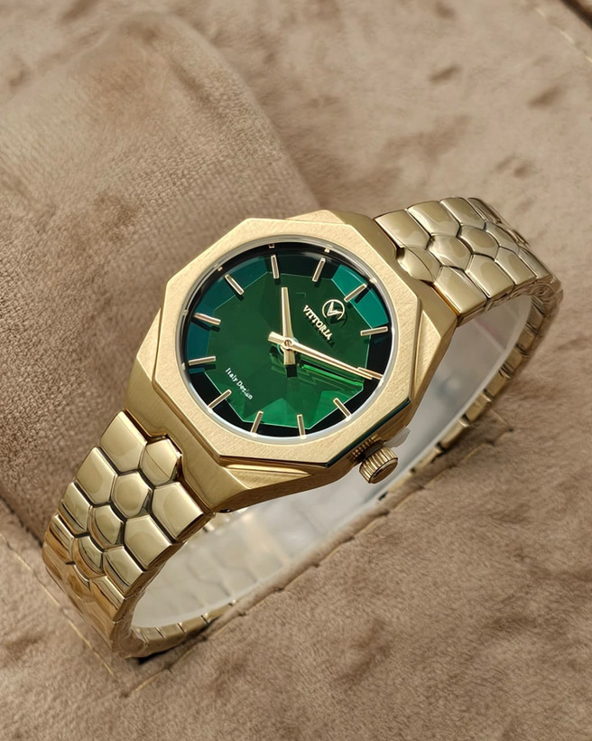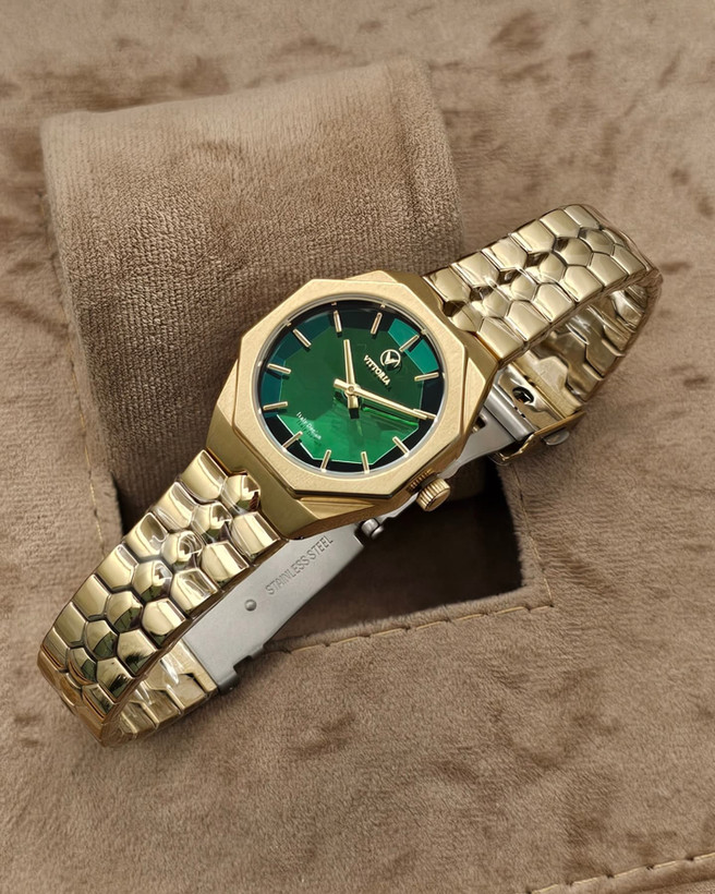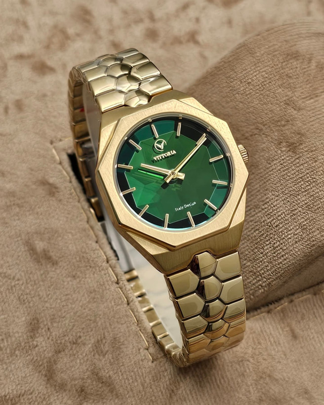 ساعت زنانه ویتوریا مگه داریم ساعت گلد صفحه سبز خوشگلتر از این مدل زنونه از برند ویتوریا ساعت زنانه ویتوریا VITTORIA کد رفرانس VT3449 موومنت ژاپنی صفحه منشوری سایز قاب متری رنگ تمام رزگلد دارای پک اورجینال + شناسنامه و جعبه شیک ضمانت معتبر 12 ماهه شرکتی