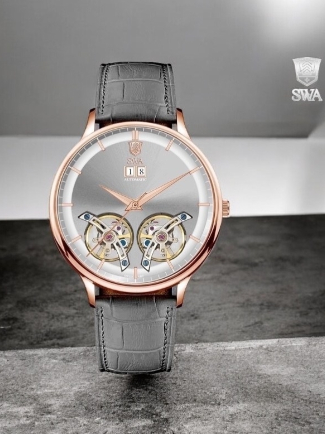 ساعت سویس ارت مردانه اتوماتیک بند چرمی دو کمپلت تقویم درشت