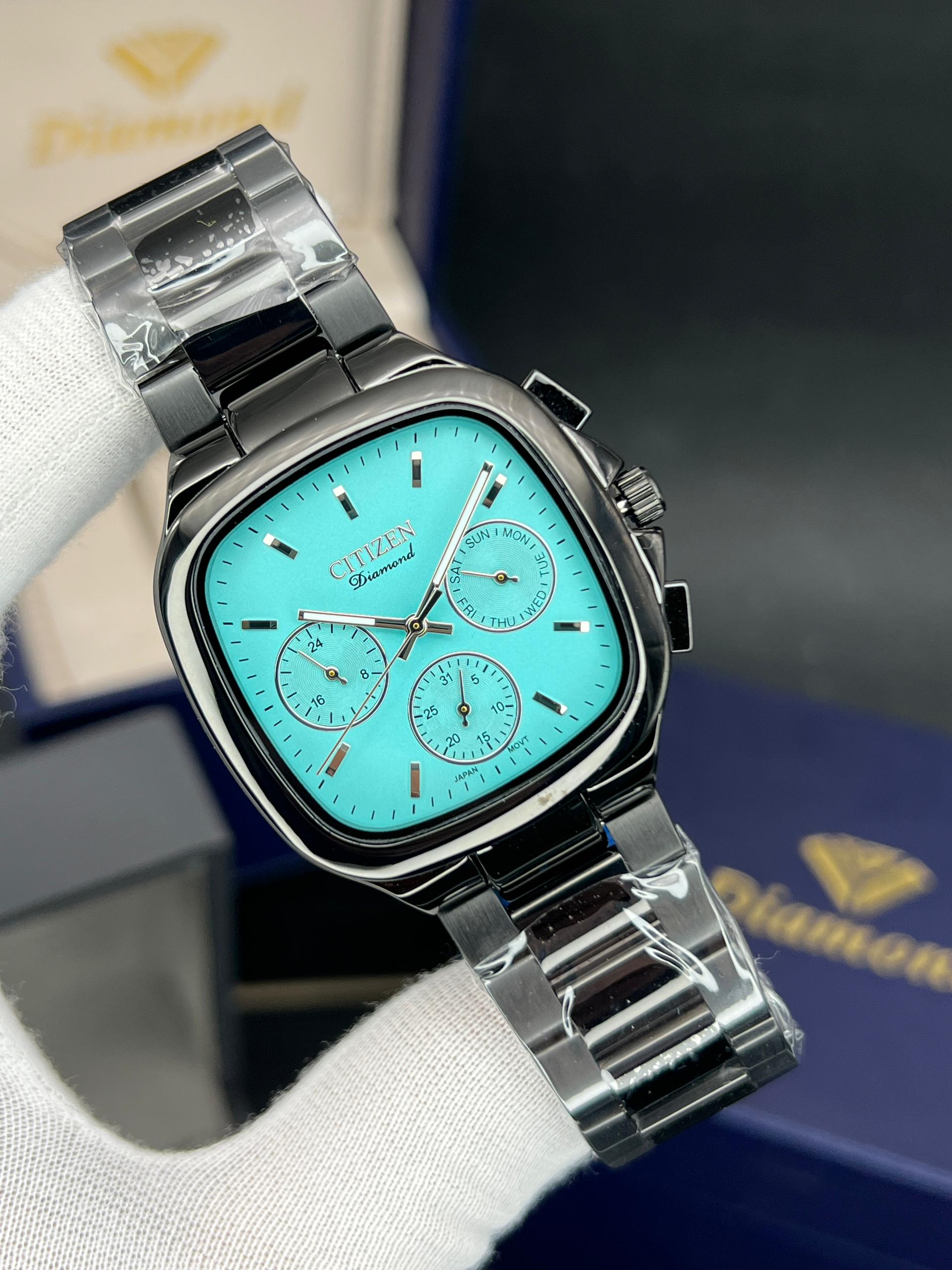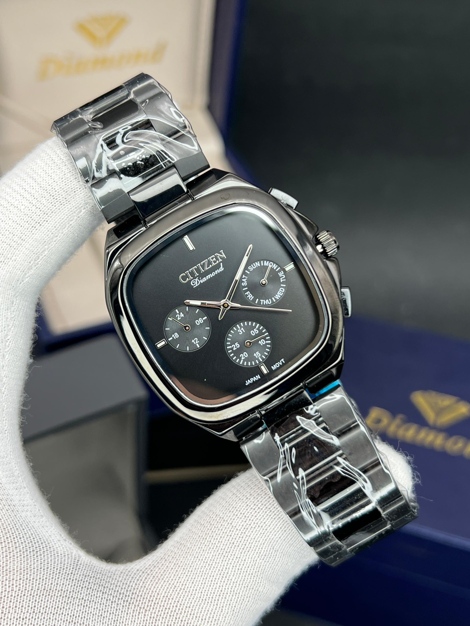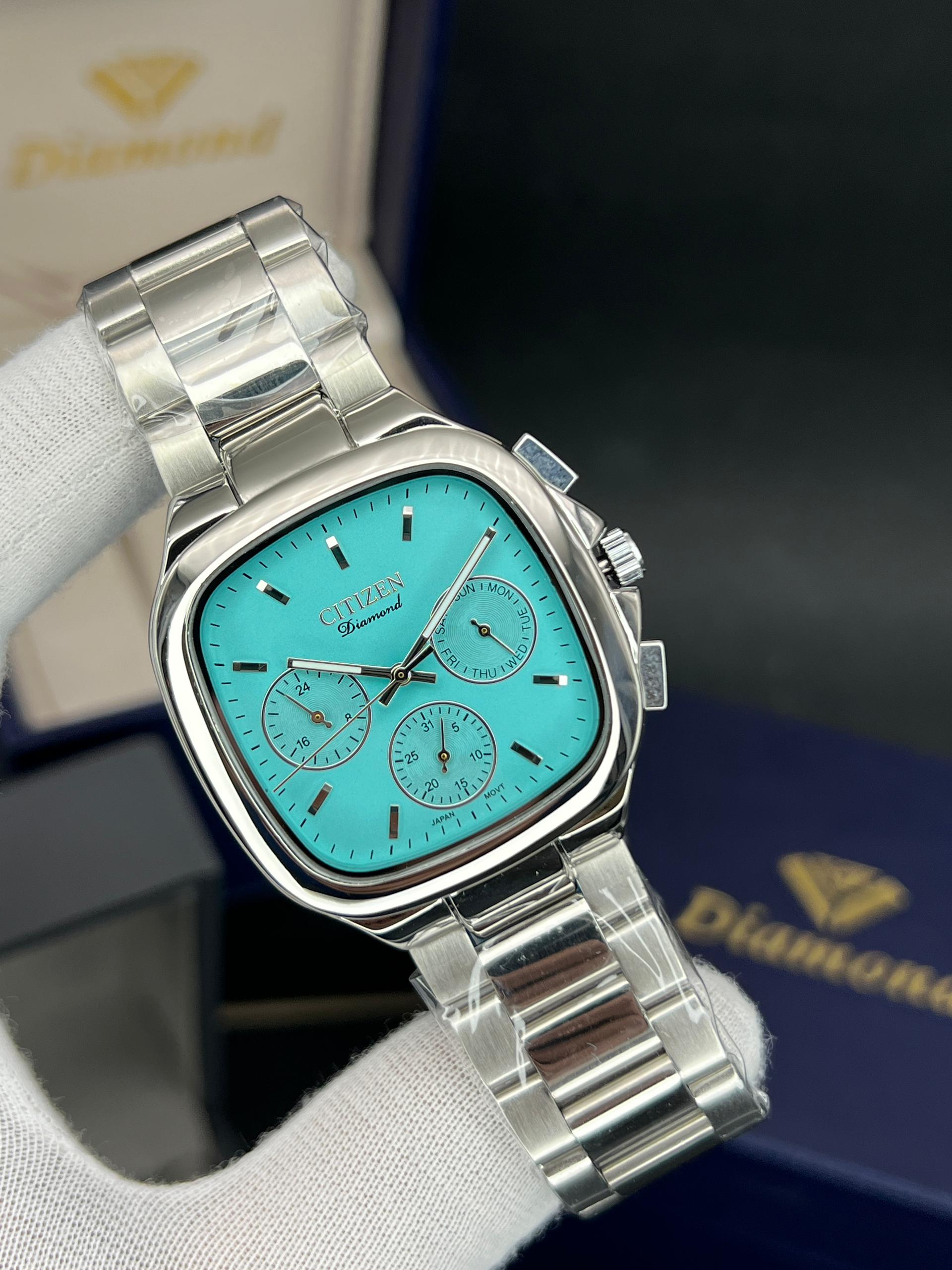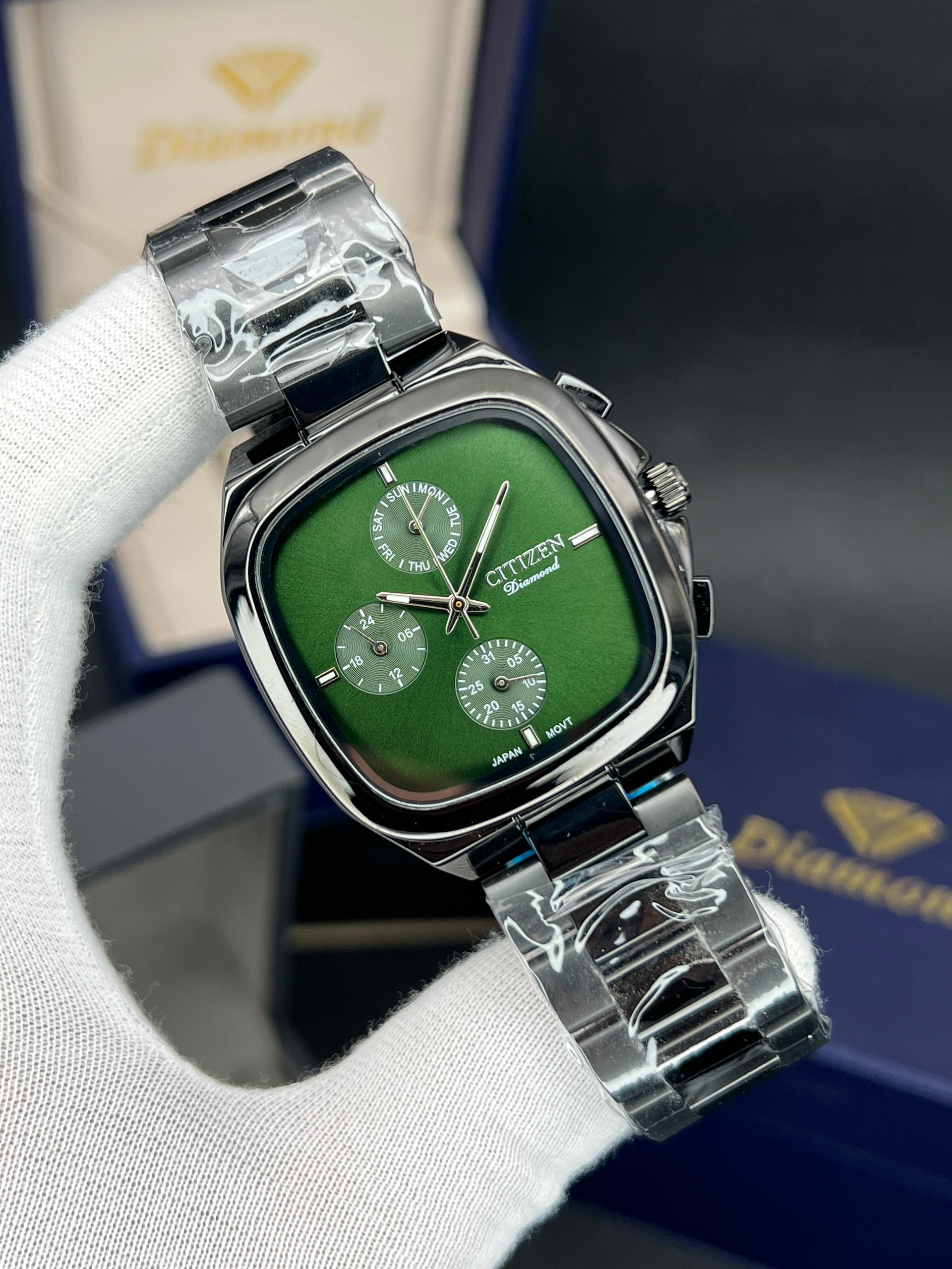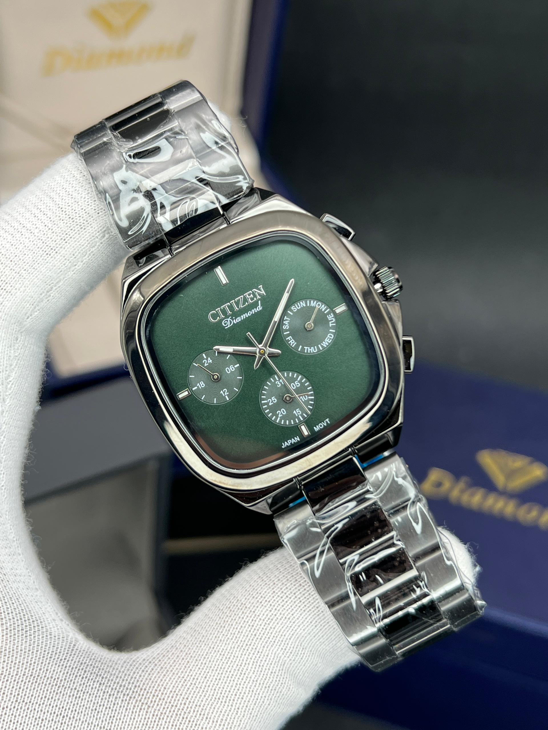 رومانسون مردانه سه موتوره فعال چهارگوش مدل خاص و پرفروش تنوع رنگ قاب و رنگ صفحه موتور ژاپن با گارانتی یکساله موتور ضد اب در حد دست شستن دارای تقویم روز وایام هفته