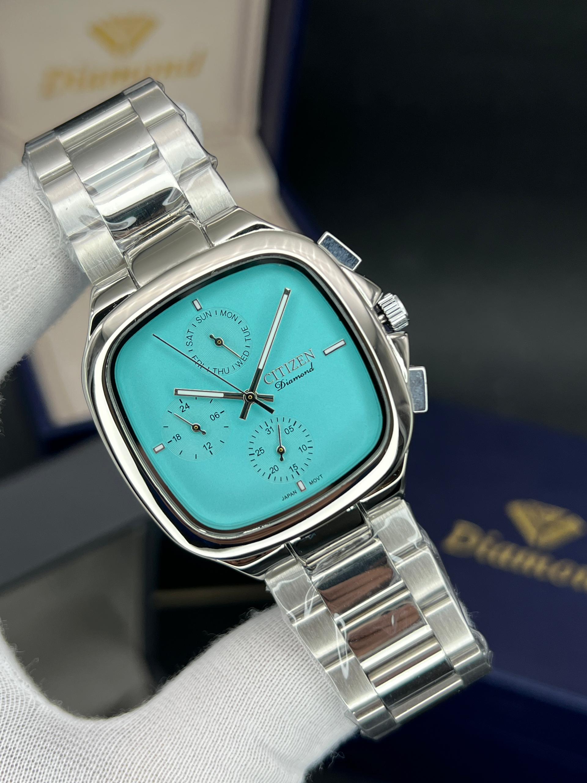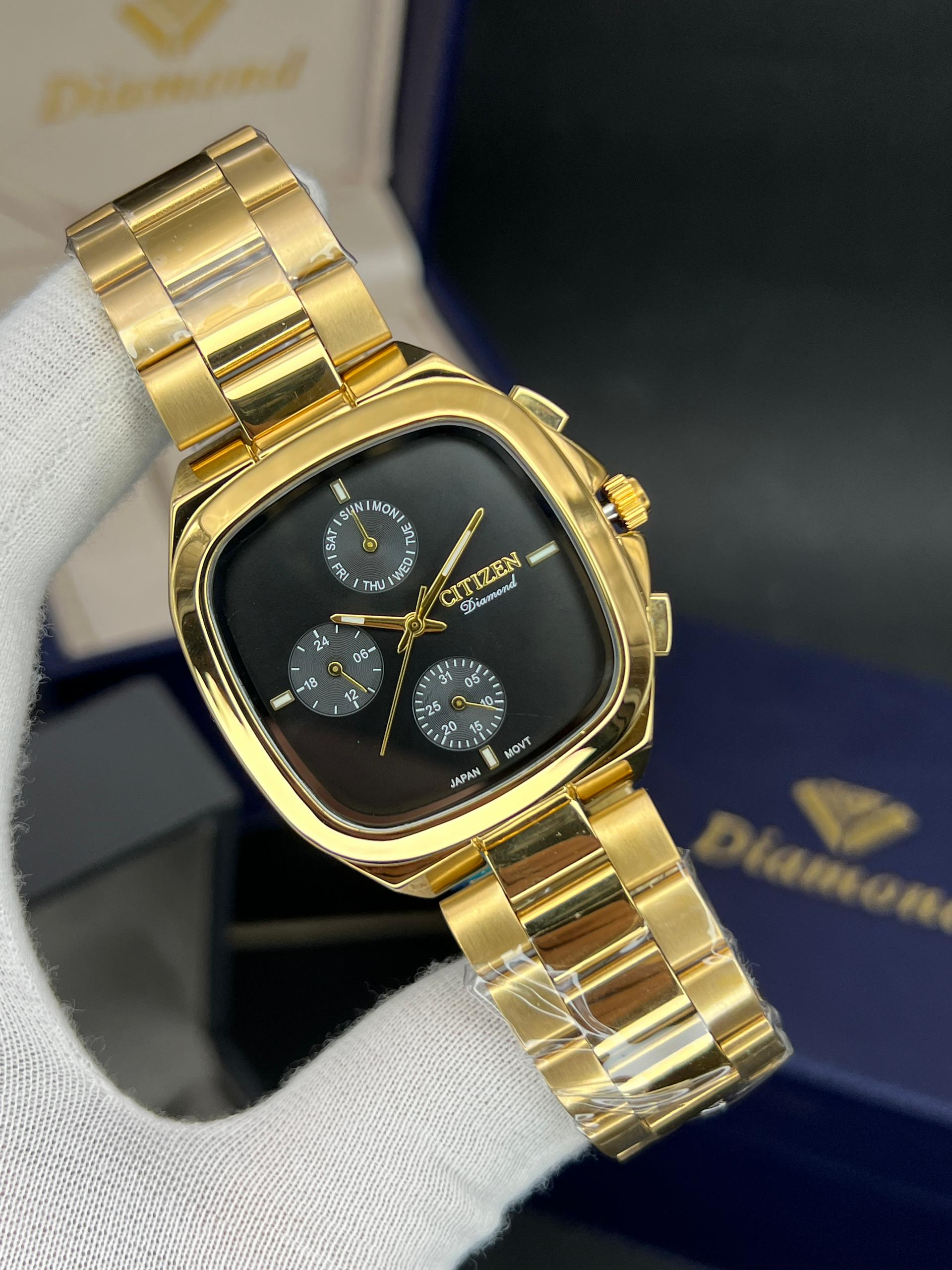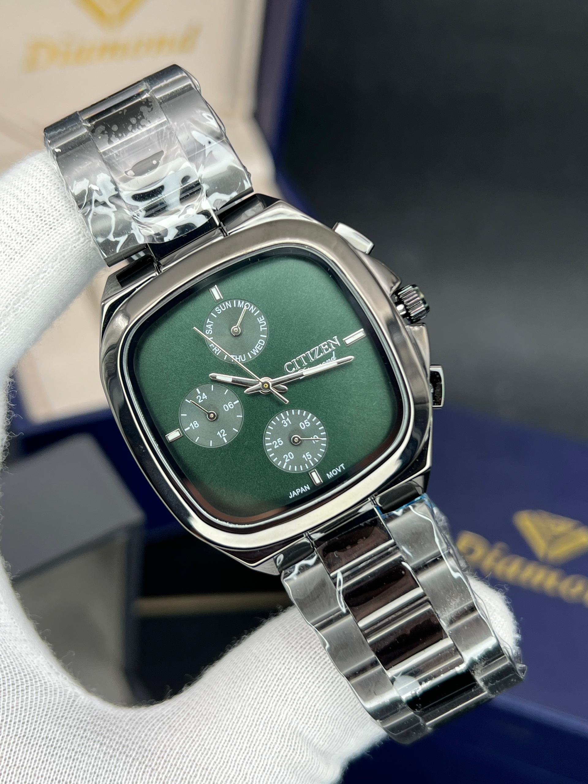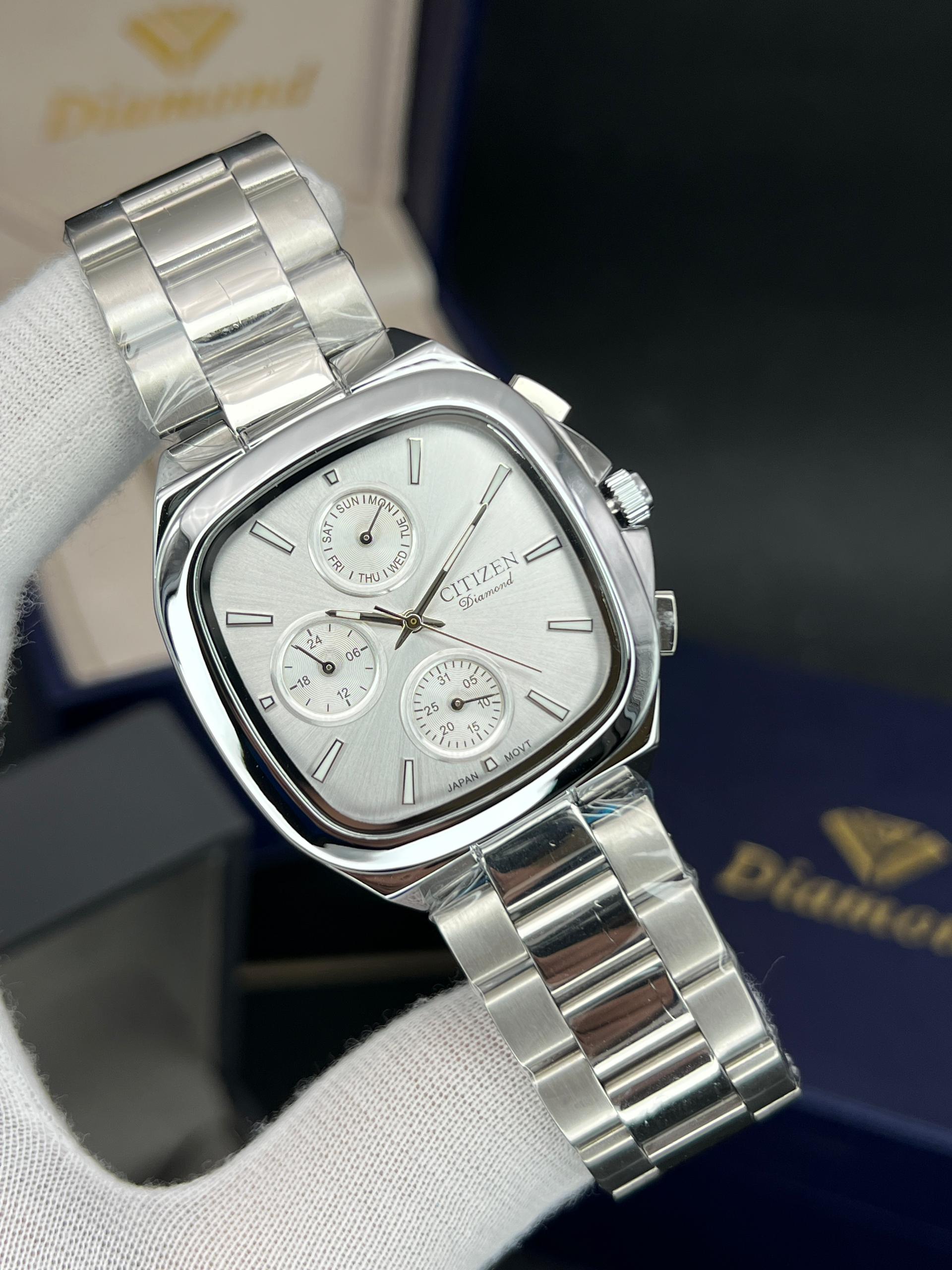 رومانسون مردانه سه موتوره فعال چهارگوش مدل خاص و پرفروش تنوع رنگ قاب و رنگ صفحه موتور ژاپن با گارانتی یکساله موتور ضد اب در حد دست شستن دارای تقویم روز وایام هفته