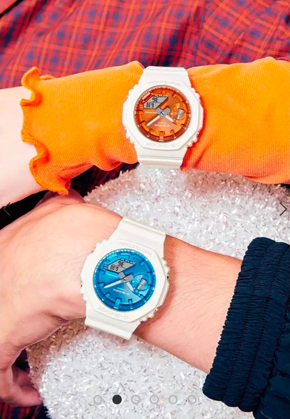 ساعت مچی اسپرت جی شاک کاسیو مدل G-SHOCK GA-2100WS-7ADR زمستون رو با کسی که برات خاصه، پر از درخشش کن — با ساعتهای رنگی و خاص کالکشن فصلی G-SHOCK 2023. این مجموعه با پنج مدل متنوع از نظر رنگ، اندازه و طراحی، برای هر نوع رابطهای طراحی شده — چه عاشقانه، چه رفاقتی، چه خانوادگی. فرقی نمیکنه کنار کی هستی، این ستها یه راه ساده و قشنگان برای نشون دادن احساست. صفحهی این ساعتها با رنگهای متالیک مختلف و الهامگرفته از زرق و برق تزئینات زمستونی طراحی شده. عبارت WR20BAR (ضدآب تا عمق ۲۰۰ متر) با فونتی چاپ شده که شبیه روبان روی کادوهاست، و پشت قاب هم نماد طنابمانند پیوند عاطفی حک شده. مدل دلخواهتون رو انتخاب کنین:
