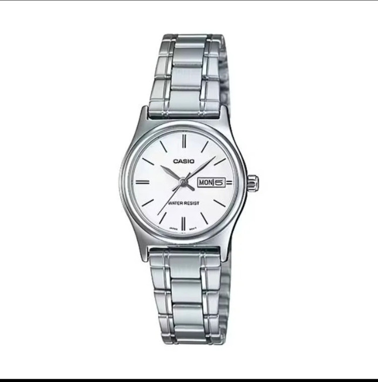 ساعت مچی زنانه کاسیو مدل CASIO LTP-V006D-7B2 با طراحی ساده و صفحه سفید، دارای نمایش روز و تاریخ است. این ساعت مقاوم در برابر آب است و گزینهای مناسب برای استفاده روزمره میباشد. ترکیب عملکرد و زیبایی، آن را به انتخابی عالی برای استایلهای کلاسیک تبدیل کرده است.