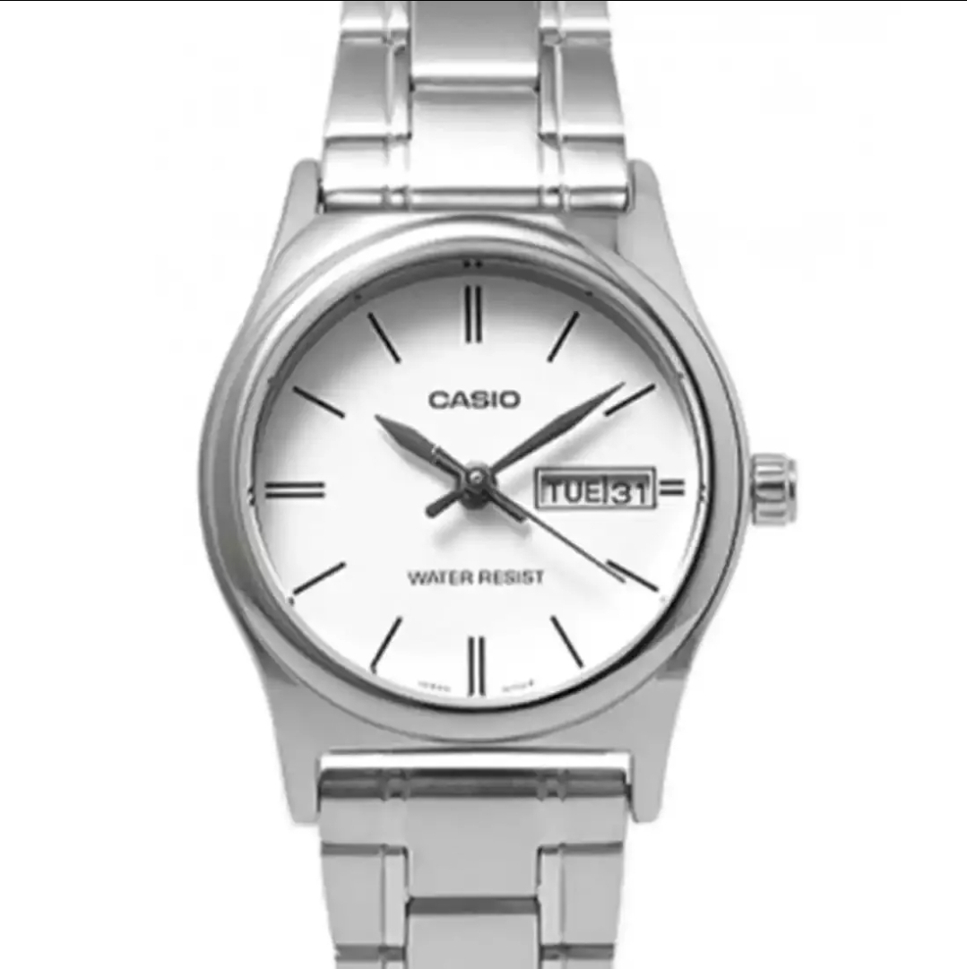 ساعت مچی زنانه کاسیو مدل CASIO LTP-V006D-7B2 با طراحی ساده و صفحه سفید، دارای نمایش روز و تاریخ است. این ساعت مقاوم در برابر آب است و گزینهای مناسب برای استفاده روزمره میباشد. ترکیب عملکرد و زیبایی، آن را به انتخابی عالی برای استایلهای کلاسیک تبدیل کرده است.