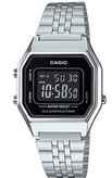 ساعت مچی زنانه وینتیج کاسیو مدل CASIO LA680WA-1D دارای طراحی رترو محبوب، بند استیل ضد زنگ و مقاومت در برابر آب است. امکانات شامل کرونومتر 1/100 ثانیهای، آلارم، نور LED برای روشنایی، و عملکردی کاربردی برای استفاده روزمره است.
