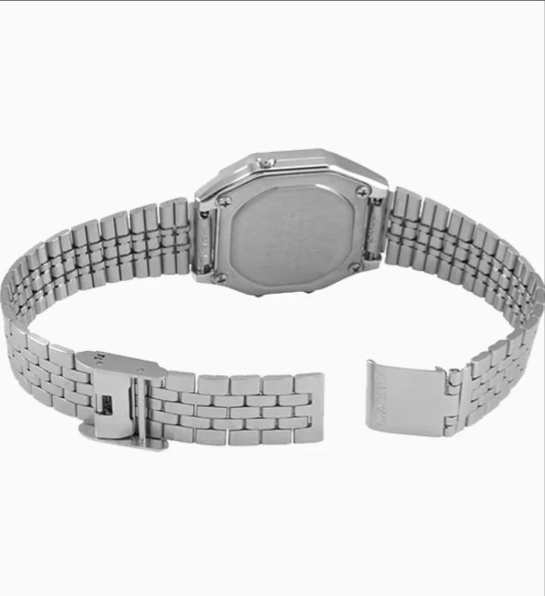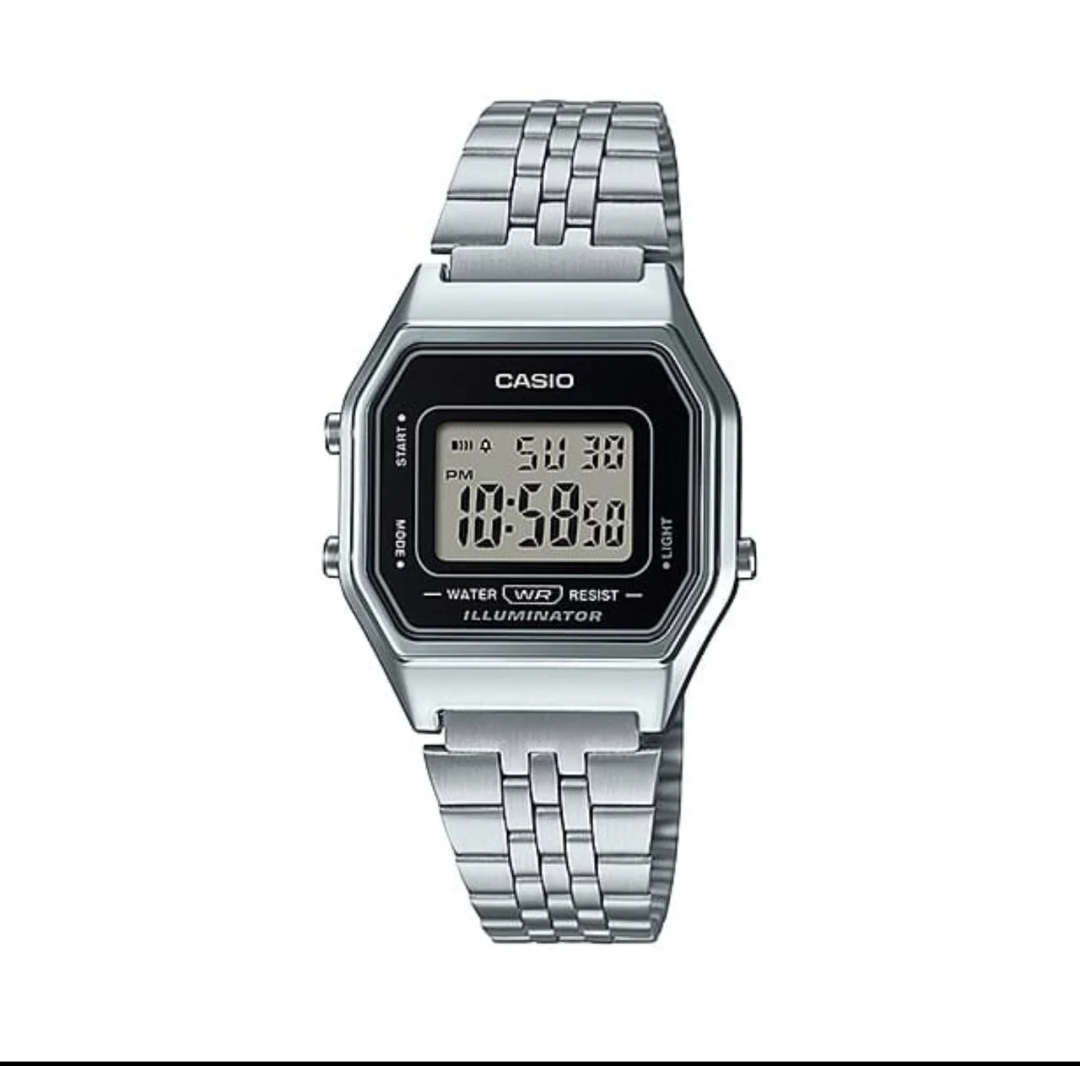 ساعت مچی زنانه وینتیج کاسیو مدل CASIO LA680WA-1D دارای طراحی رترو محبوب، بند استیل ضد زنگ و مقاومت در برابر آب است. امکانات شامل کرونومتر 1/100 ثانیهای، آلارم، نور LED برای روشنایی، و عملکردی کاربردی برای استفاده روزمره است.