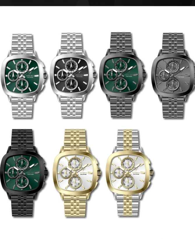 ویتوریا چهارگوش مردانه بند رولکسی جدید فول تایم سه موتوره 3403