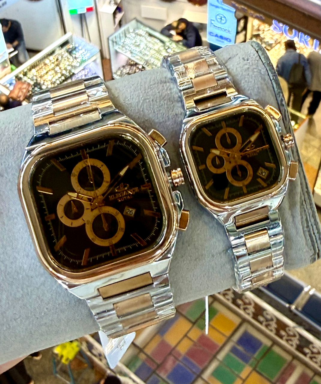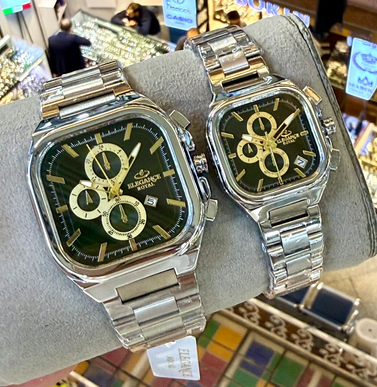 ست فلزی (قیمت هر کدام تک داخل سایت درج شده) طرح سه موتوره موتور ژاپن یکسال گارانتی رنگ وموتور رنگ ثابت ضداب در حد دست شستن چهارگوش خاص تقویم دار تنوع رنگ بند وصفحه