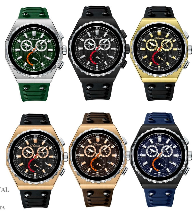 ساعت مچی مردانه اکسنت سه موتوره کرنوگراف بند رابر 183015