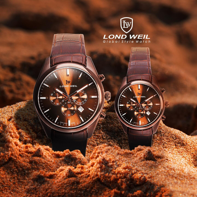 "Londweil" • Code: 83008450052 • [information] Leather Strap Case & Dial Brown Couple Watch • [بند چرمی/ قهوای] [قاب و صفحه کافی ست] • بند چرم طبیعی _دورقاب فول استیل و ضد حساسیت _موتور ژاپن • قفل پروانهای با کیفیت _شیشه ساپیر ضد خش _دوسال گارانتی رنگ وموتور _جعبه اورجينال شرکتی و کارت گارانتی شرکتی