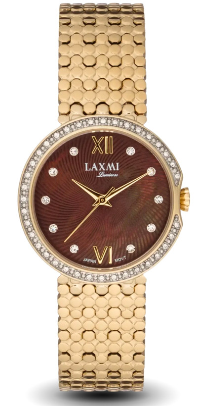 اگر به دنبال جلوهای لوکس و زیبا در بین مدلهای زنانه از سری Luminous هستید، لکسمی 8029 انتخابی مناسب برای شماست. در طراحی این مدل بندهای فلزی قطور با رنگ طلایی به همراه قفل ساده و قاب طلایی استیل بکار رفته است. صفحه دایرهای ساعت از جنس صدف سفید رنگ بوده و سایزی برابر با 31 میلیمتر دارد. نیروی محرکه Laxmi 8029 باتری کوارتز استاندارد ژاپن است. برای شیشه آن نیز از شيشه معدنى مقاوم در برابر خش و فشار 5ATM کمک گرفتهاند. یک سال گارانتی این محصول شامل عملکرد موتور، رنگ و ایرادات کارخانهای است