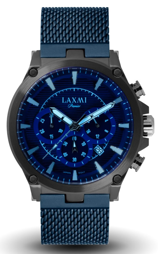 Laxmi 8103 با موتور کوارتز کورنوگراف ژاپن، دارای کرنومتر، تقویم و همچنین عقربه شب نما برای دید در تاریکی است. این مدل با یک سال گارانتی عملکرد موتور، رنگ و ایرادات کارخانه ای به بازار عرضه می شود. یک قفل ساده هم برای بندهای حصیری دودی رنگ آن در نظر گرفته شده است. سایز سری Premier لکسمی مردانه 8103 برابر 47 میلیمتر با صفحه دایره ای مشکی و قاب استیل طلایی است. شيشه بکار رفته در این ساعت نیز در برابر خش و فشار آب 5ATM مقاوم می باشد.